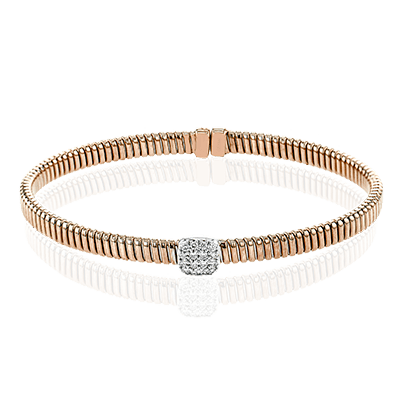 This textured bangle features a modern design with sparkling diamonds and a magnetic enclosure.