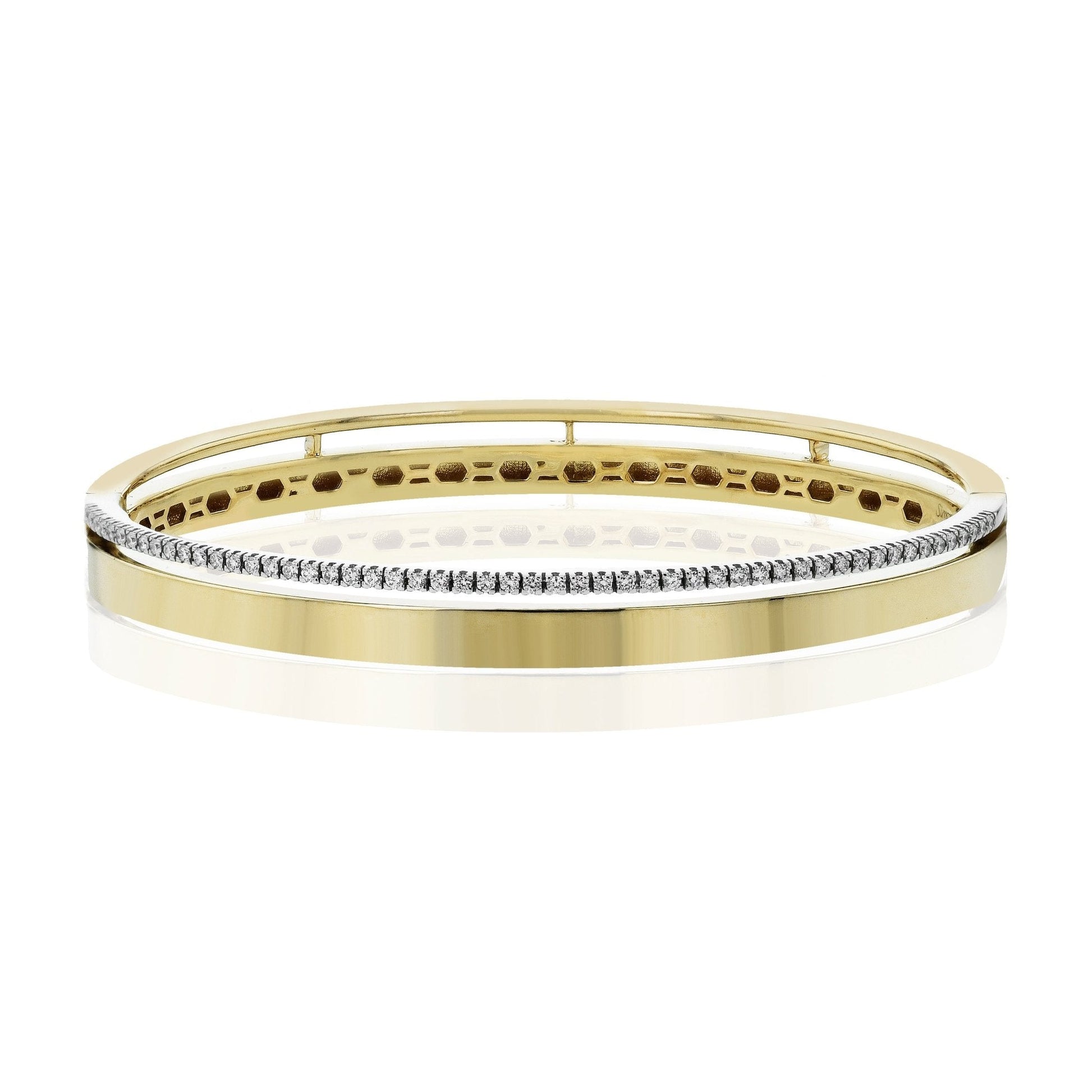 This stunning bangle has a matte finish and is accented by a row of brilliant white diamonds along its edge.