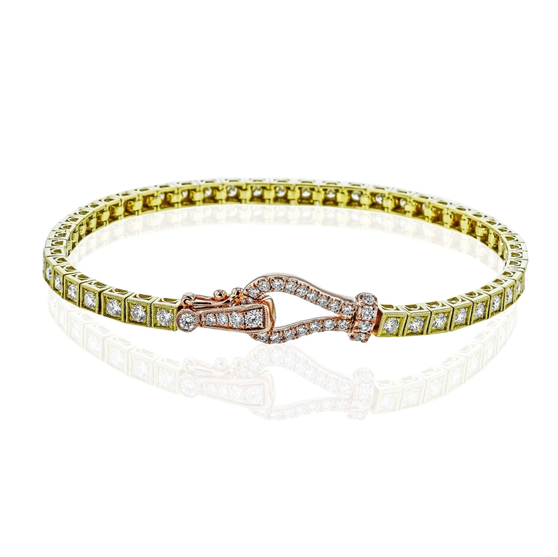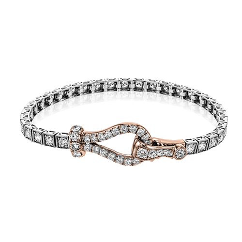 This stunning bracelet features a unique design adorned with an array of shimmering white diamonds.