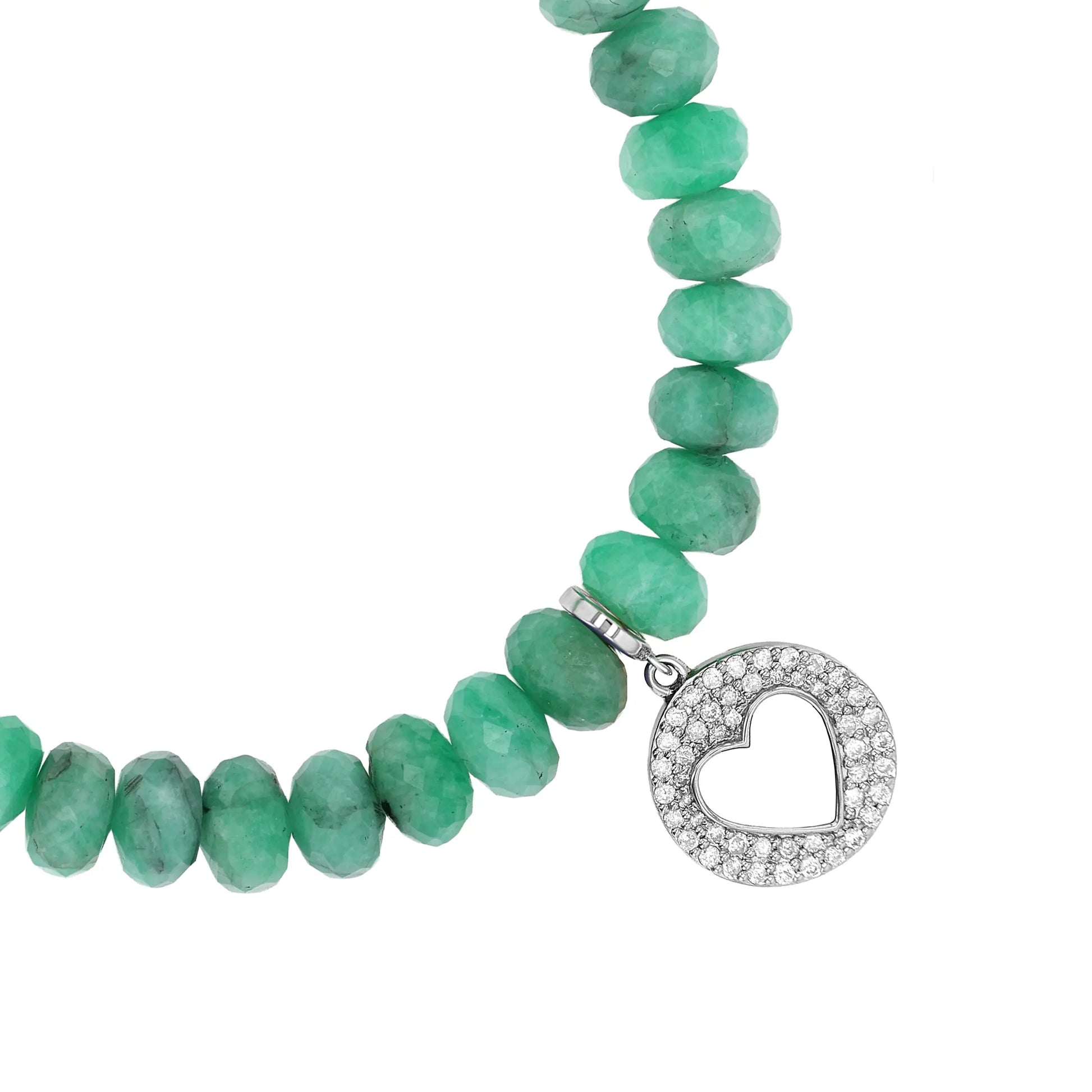 Emerald Bracelet with Diamond Open Heart Charm - 7mm