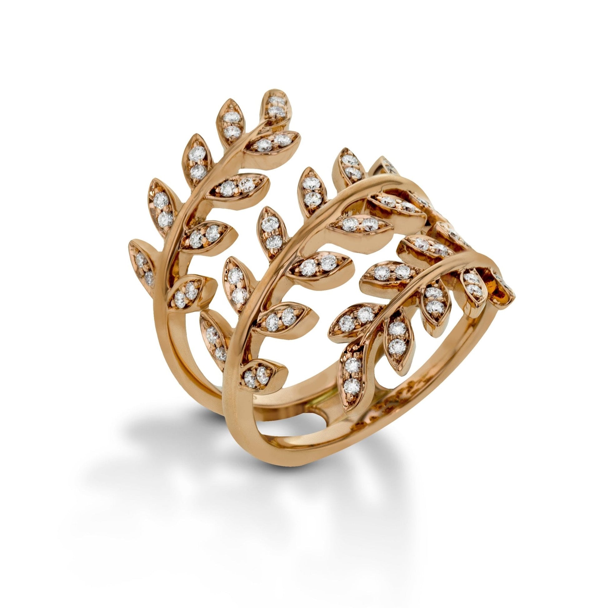 A trio of leafed branches creates a distinctively beautiful effect on this dazzling diamond ring.