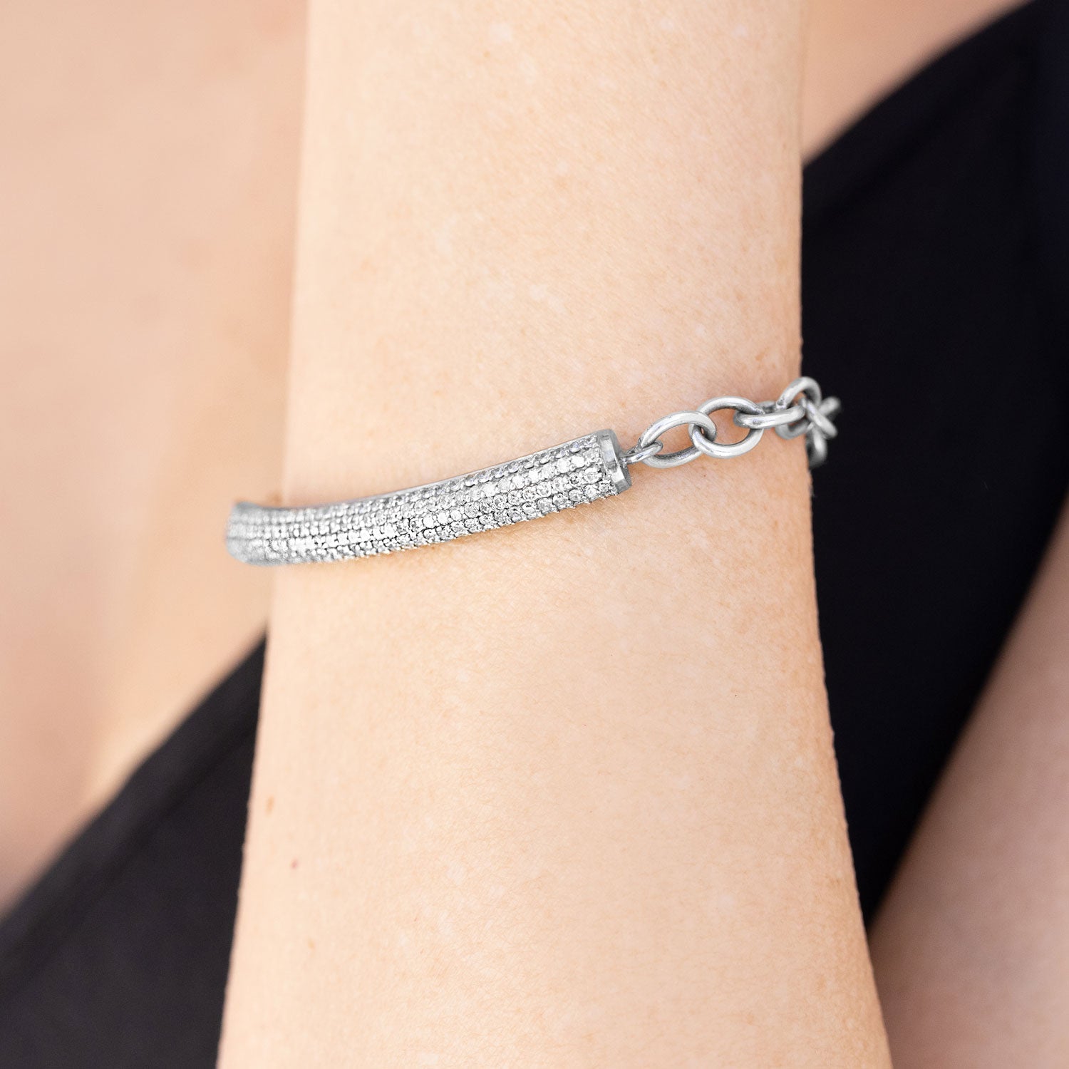 Link Chain Bracelet with Diamond Bar