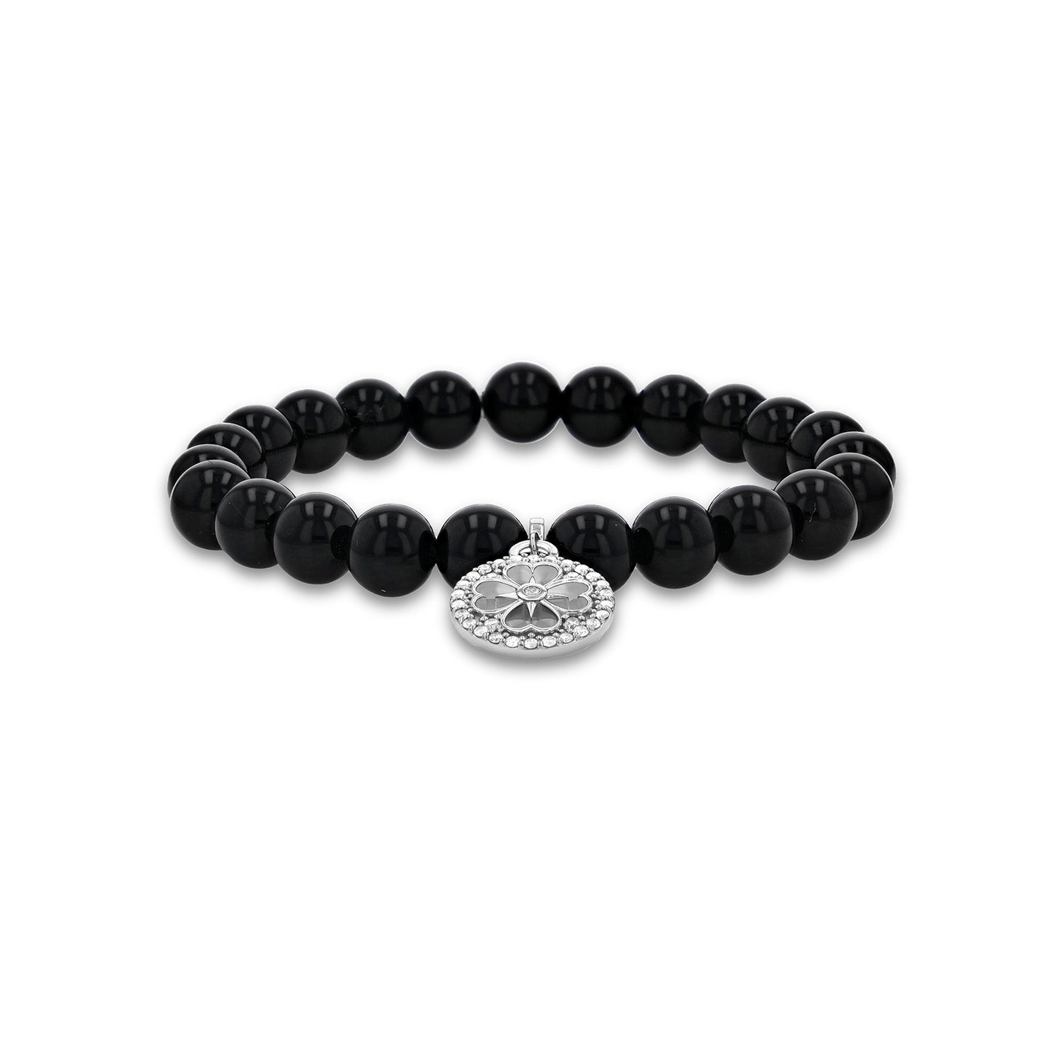 Onyx Bracelet with Diamond Open Clover Charm - 8mm