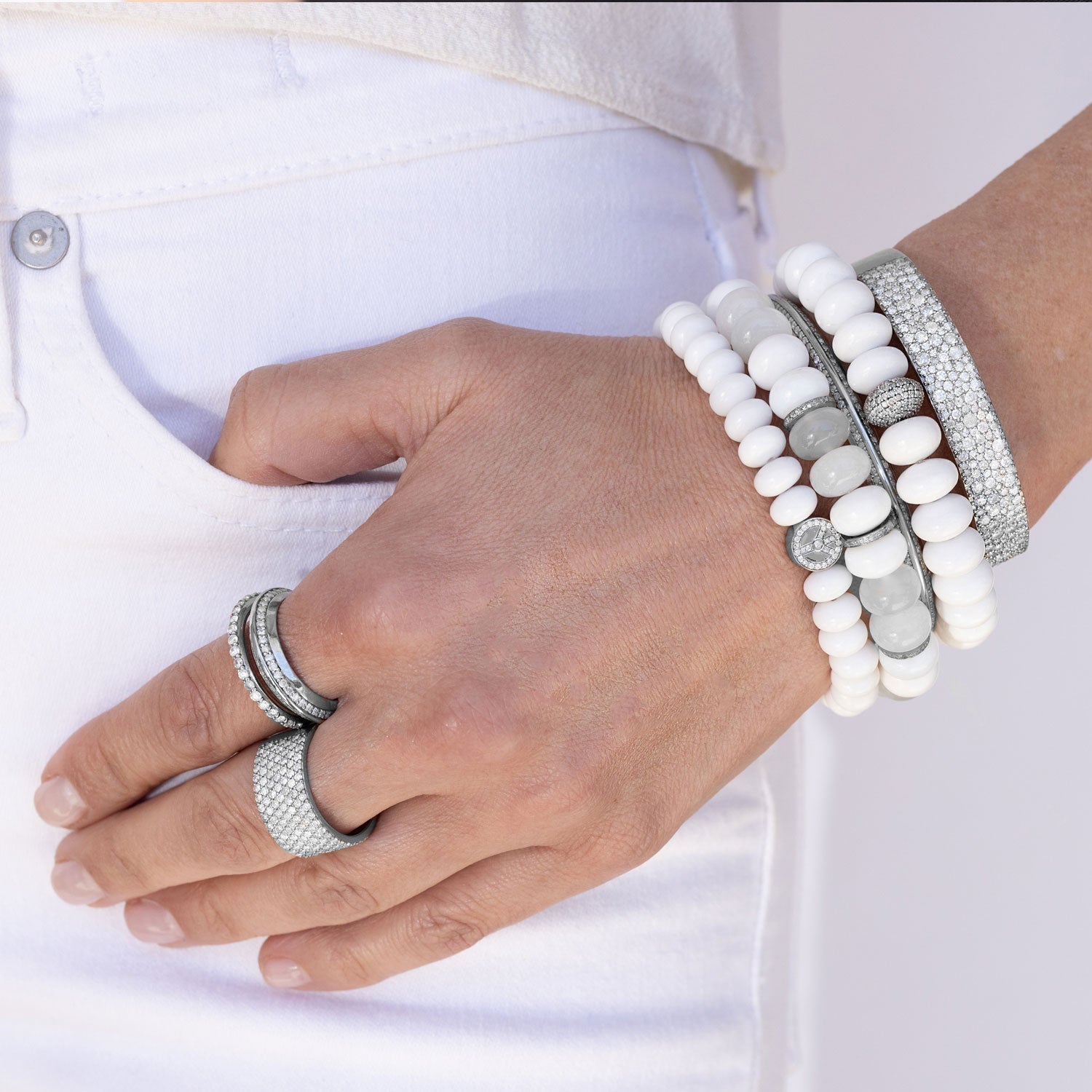 Pave Diamond Silver Wide Cuff