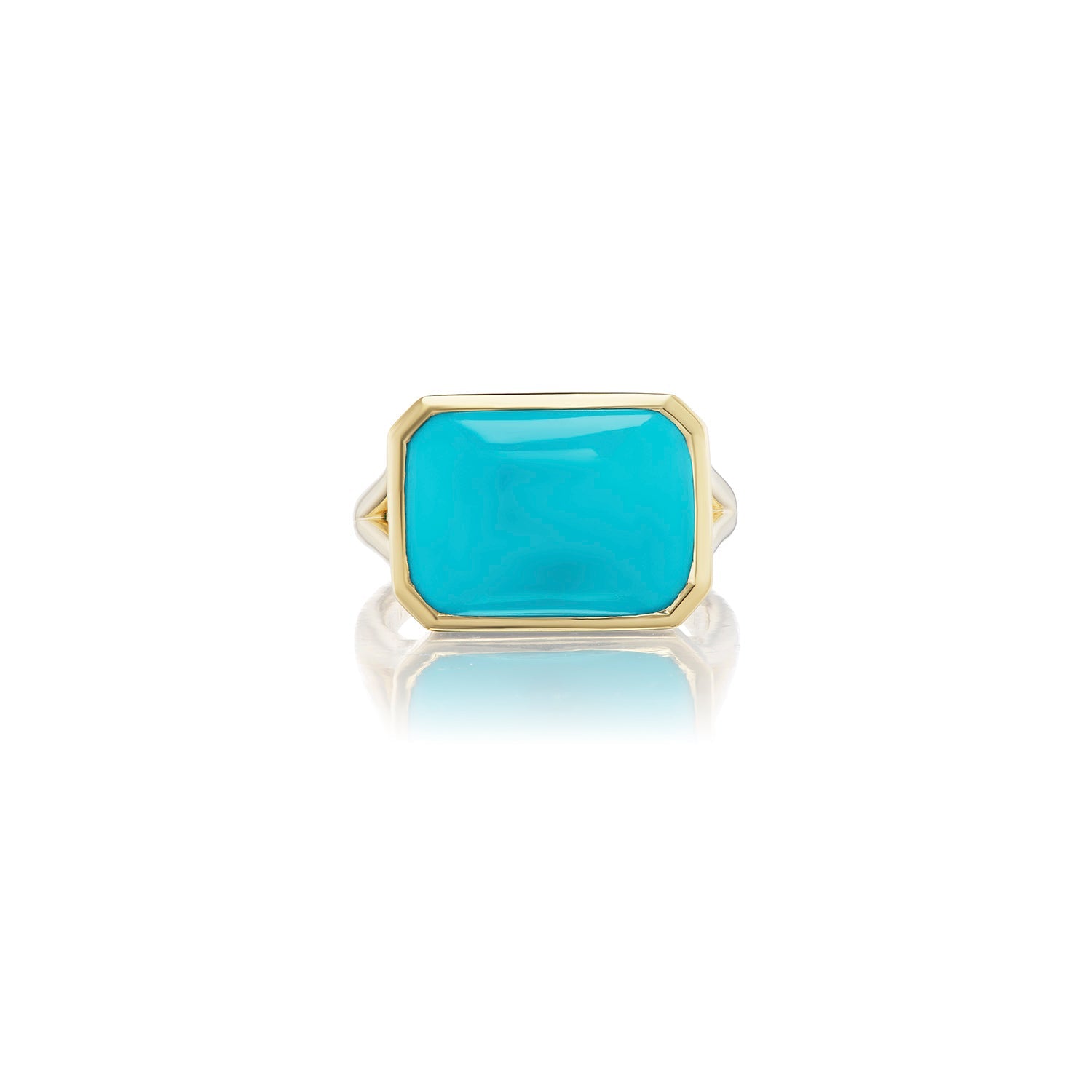 The Joni 14k Gold Emerald Cut Cabochon Ring - Turquoise