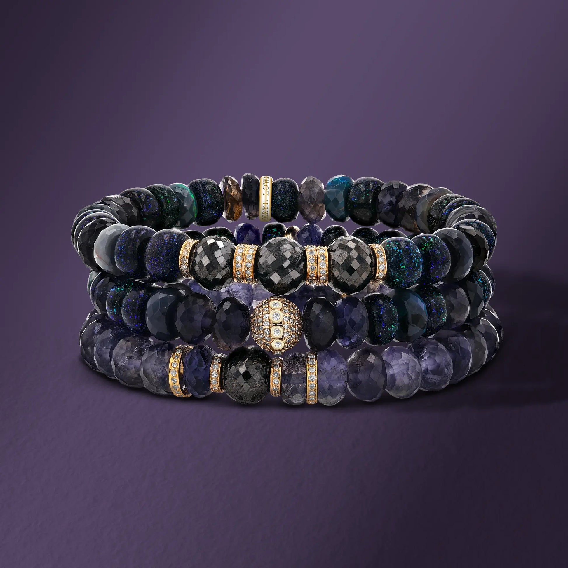 The Nicks Stack - 14k Black Diamond, Opal & Iolite - One of a Kind