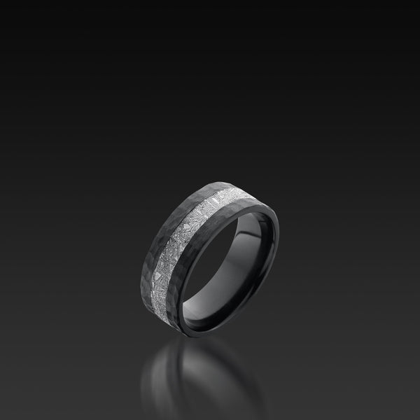 • Black Zirconium wide flat band with hammer finish