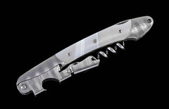 One of a Kind Corkscrew Model: SC25002 Frame and cutter: Hand-forged damascus Scale: Sardonyx stone