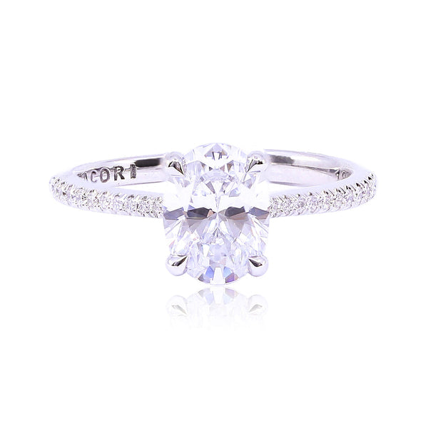 White 18 Karat Prong Set Semi-Mount Ring Size 6.5 With 48=0.23Tw Round G In Color Vs Diamonds And One 8.50X6.50Mm Ov CZ, BY TACORI HT2581 OV 8.5X6.5 W/589659