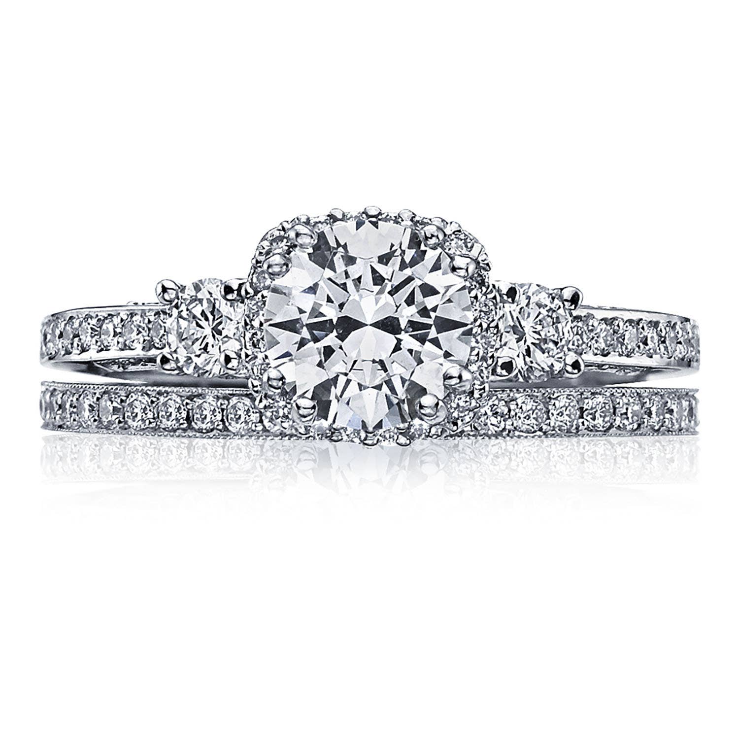 SM PAVE CUSHION HALO/2RD/PAVE SIDE SPLIT 4PRONG CENTER FOR 6.5MM RD 18KT WG RING BY TACORI, DIAS=.50, SERIAL