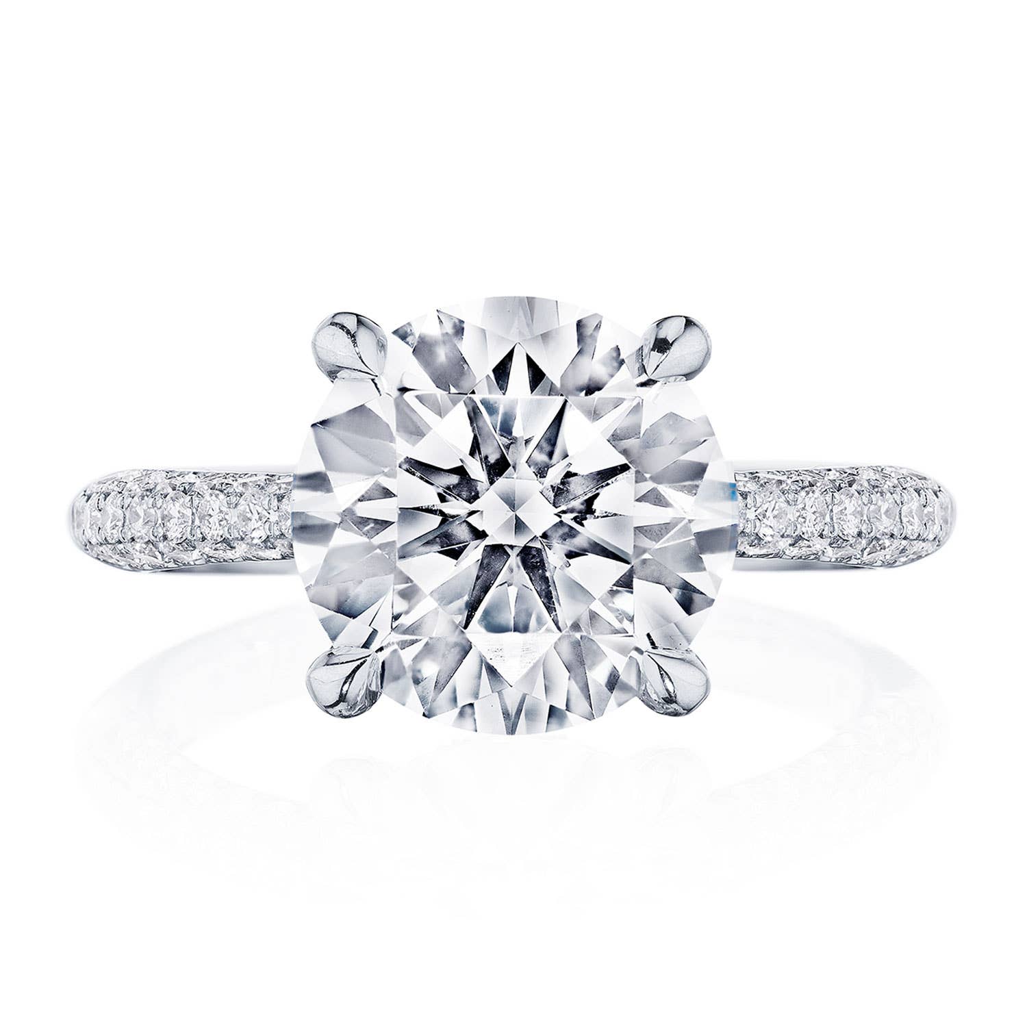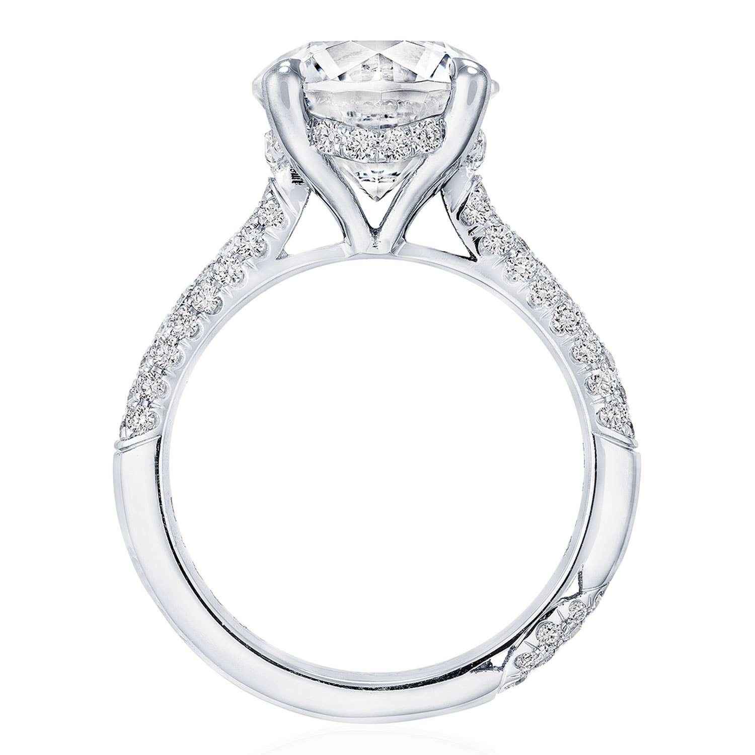 White Platinum Cathedral Semi-Mount Ring Size 6.5 With 76=0.55Tw Round G In Color Vs Diamonds And One 4.00Ct Rd CZ, BY TACORI HT2673 RD 10/589562