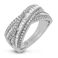 This ring showcases a bold multi-row design with alternating baguette and round diamonds, creating a striking combination of brilliance and texture. Its elegant craftsmanship makes it a perfect statement piece for any occasion.