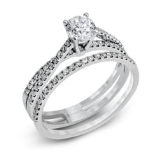 This wedding set features an elegant intertwined split shank design with diamonds meticulously set along the ascending bands.