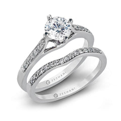 A classic addition to our refined rebel collection, this bridal set is set with .21ctw of white diamonds in a gleaming 14k white gold setting.