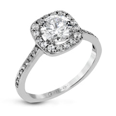 This ring features a cushion-shaped halo of sparkling stones that frames the center beautifully. Additional stones along the band add extra brilliance and a refined touch to the sleek design.