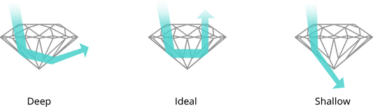 When a diamond has a good cut, light travels through it easily, adding to its spark. The light that is passed through the diamond because of cut is alone responsible for making the diamonds shine and increase their desirability. If a diamond is not cut properly, light enter through the table after reaching the facets, it leaks out from bottom or side, cutting down its brilliance.