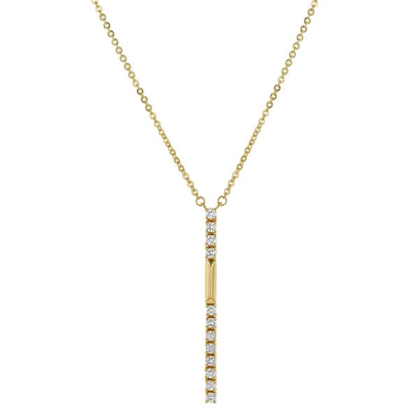 14K yellow gold Y design necklace set with 0.27 carat round brilliant diamonds. Price includes chain.