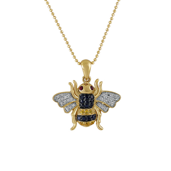 14K yellow gold butterfly pendant set with 0.13 carat round brilliant white diamonds and 0.42 carat black diamonds detailed with black rhodium. Chain sold separately.