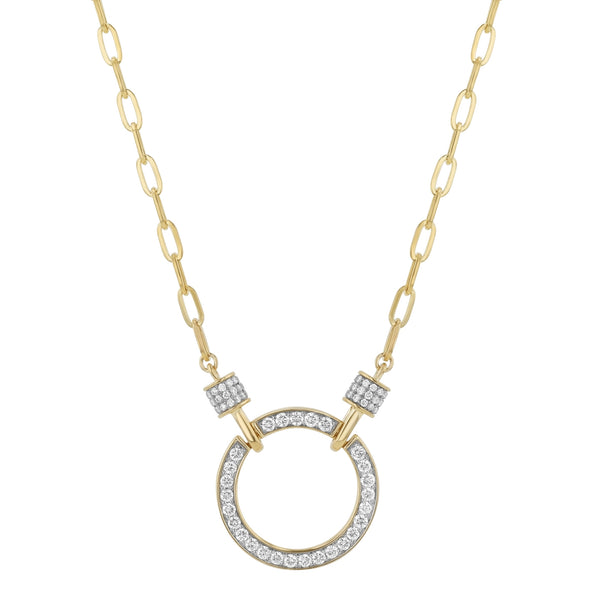 14K yellow gold circle necklace set with 0.80 carat round brilliant diamonds. Chain included.