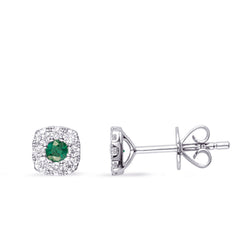 This Earring is available in 14K White Gold. There are a total of 18 stones. There are Emerald with a total carat weight of 0.13 set in a Micro Prong setting.There are Rounds stones with a total carat weight of 0.25 set in a Micro Prong.
