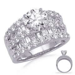 This Engagement Ring is available in 14K White Gold. There are a total of 58 stones. There are Baguette with a total carat weight of 0.51 set in a Channel Set|Prong Set setting.There are Princess stones with a total carat weight of 0.92 set in a Channel Set|Prong Set.