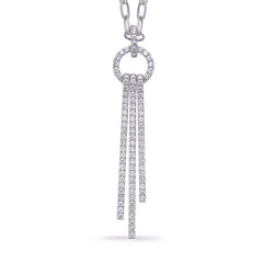 This Necklace is available in 14K White Gold. There are a total of 90 stones. There are Rounds with a total carat weight of 1.17 set in a Micro Prong setting.