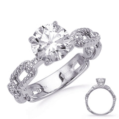 This Engagement Ring is available in 14K White Gold. There are a total of 16 stones. There are Rounds with a total carat weight of 0.1 set in a Micro Prong setting.