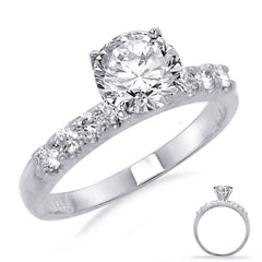 This Engagement Ring is available in 14K White Gold. There are a total of 8 stones. There are Rounds with a total carat weight of 0.34 set in a Prong Set setting.