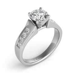 This Engagement Ring is available in 14K White Gold. There are a total of 8 stones. There are Rounds with a total carat weight of 0.27 set in a Channel Set setting.