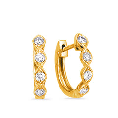 This Earring is available in 14K Yellow Gold. There are a total of 8 stones. There are Rounds with a total carat weight of 0.24 set in a Micro Prong setting.
