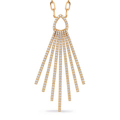 This Necklace is available in 14K Yellow Gold. There are a total of 204 stones. There are Rounds with a total carat weight of 1.61 set in a Prong Set setting.