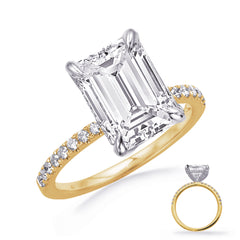 This Engagement Ring is available in 14K Yellow & White Gold. There are a total of 74 stones. There are Rounds with a total carat weight of 0.38 set in a Micro Prong setting.