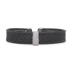 White 18 Karat Stainless Steel Black Cable on the outside w/ Sting Ray on the inside BY ALOR 04-52-R651-11 Pvd Bangle Bracelet Length 6.25 0.19tw Round G/H In Color SI-1 In Clarity Diamonds