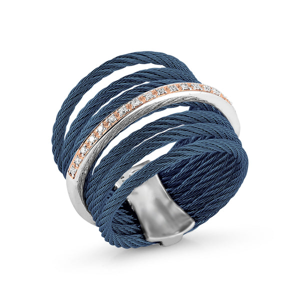 Seven rows of open cable with a band of diamonds in the center.