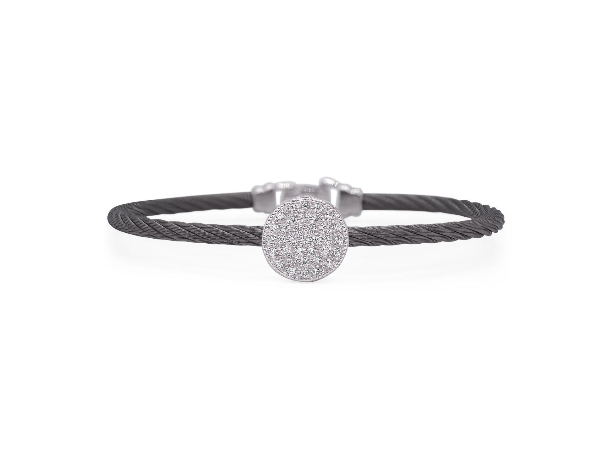 Lady's White 18Kt WG/ BLACK Stainless Steel Bangle Bracelet Length 6.50 With 35=0.29Tw Round H In Color Si Diamonds, BY ALOR #04-52-1662-11