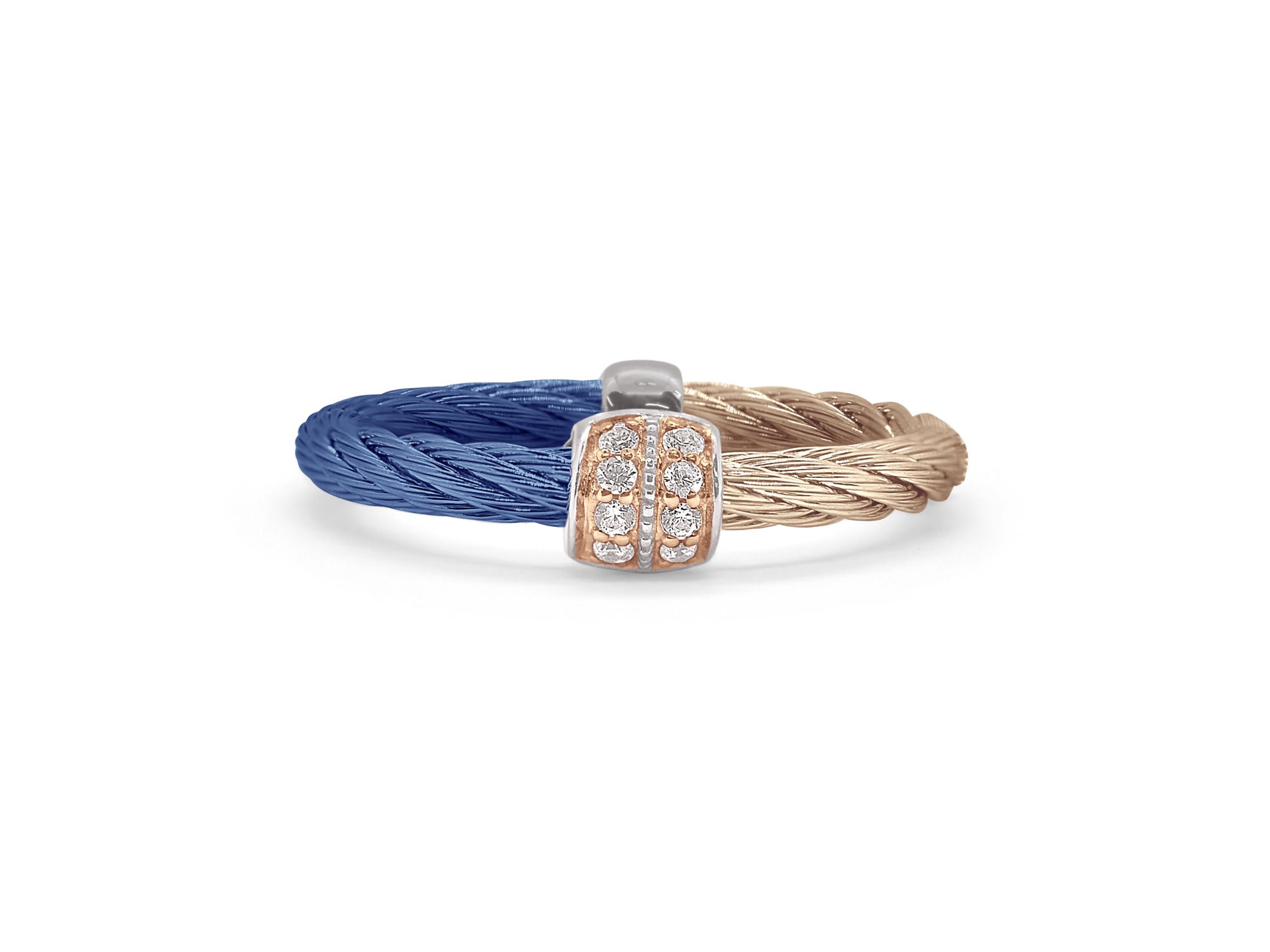 18KWG Stainless Steel Carnation & Navy PVD Cable Contemporary Fashion Ring Size 7 BY ALOR 02-48-S917-118=0.07tw Round G/H In Color SI-1 In Clarity Diamonds