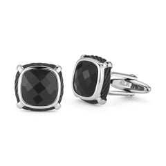A set of cufflinks with a center gemstone and a border of cable. Imported.