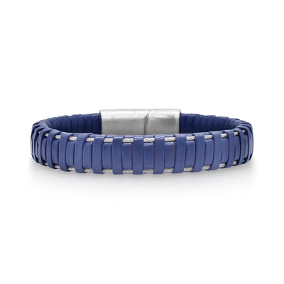 Men's Black Steel PVD Cable Leather Matte' Bangle Bracelet Length 8