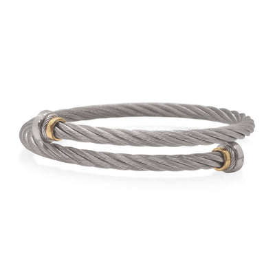 Two-Tone Stainless Steel Grey Cable Bypass Bracelet Length 7.5