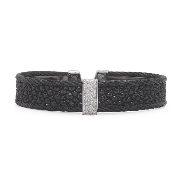 A classic mini cuff with a stingray center and cable border and a bar of diamonds in the center.