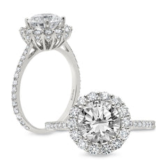 Classic halo with a double row of stones surrounding the center. One of Peters favorite pieces.
