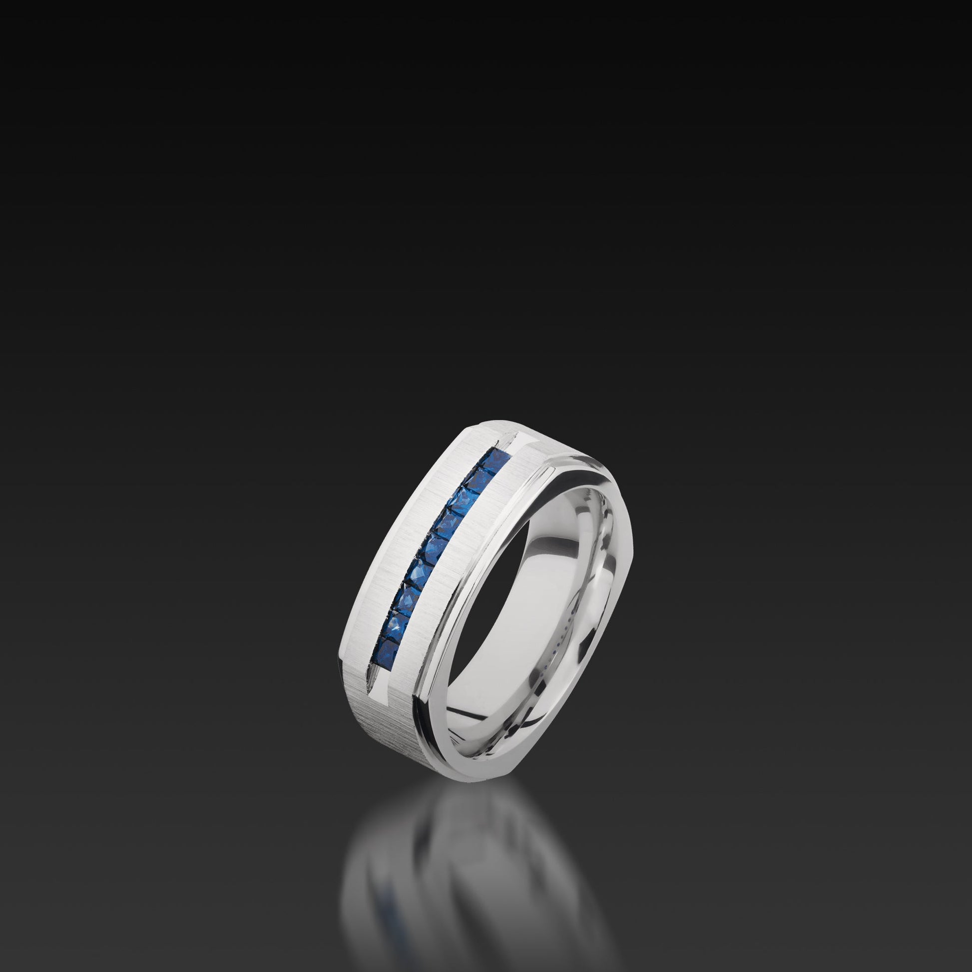 Cobalt Chrome Flat Square Band with Grooved Edges and Sapphire Accents