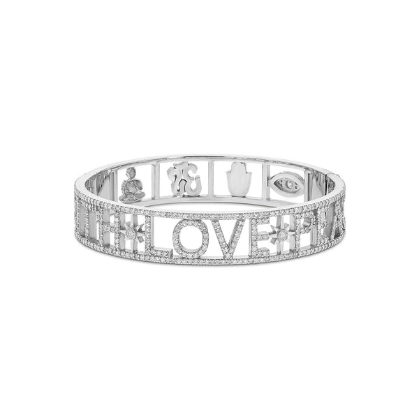 Faith Love Peace Icon Pave Hinge Bracelet
