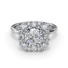 Graduated diamonds join together to create an elegant halo while providing maximum shine to your center stone. This engagement ring can be special ordered in any finger size, in Platinum, 18KT & 14KT gold and can be customized for any shape and size centerstone.