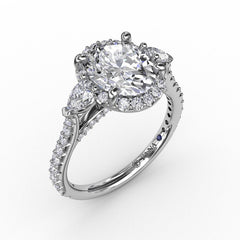 White 14 Karat Halo Semi-Mount Ring Size 6.5 With 60=0.67Tw Round G/Si-1 Diamonds And 2=0.10Tw Pear G/Si-1 Diamonds CZ CTR, BY FANA JEWELRY S3280/WG