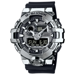 Pride in performance meets the elegance of a stainless-steel watch bezel finished with silver ion plating. A wondrous combination of G-SHOCK craftsmanship and forged luxury, the G-SHOCK GM700-1A sports the popular large case of the GM700 and adds a level of environmental consciousness with a shock-resistant case molded from a bio-based resin. Silver ion-plating elevates the dial to next- level sophistication, accenting the 3D face and indices.Durable and reliable, the GM700-1A men’s stainless-steel watch is crafted for those who want big style and big performance. The 58mm x 53mm face infuses luxury with a rugged look. The GM700-1A is one of the biggest G-SHOCK steel watches in the G-STEEL family, and its size is sure to impress. Comfort is always a consideration at the forefront of G-SHOCK design, and the resin band of this stainless-steel watch ensures a comfortable fit.Reading your watch in any lighting condition is crucial. Activating the Super Illuminator LED with the large front button ensures it’s easy to read the watch face no matter the level of lighting. This stainless-steel watch is also water resistant to 200 meters (wr 20 bar), boasting the G-SHOCK reputation for outstanding protection and durability. Stainless steel beauty in a water-resistant watch? That’s G-SHOCK rugged luxury.