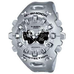 Everyone counts on G-SHOCK for unceasing evolution. But check out this comprehensive reinterpretation, representing the G-SHOCK approach to construction and design that powerfully conveys the brand’s unwavering commitment to toughness. The GAV01 features an exterior with an organic form bringing together components with sharply defined edges, combined with a large, full-screen LCD topped by a metallic dial with openwork and employing the Shock Release Hand, among other features. With its strikingly innovative and original design concept, the GAV01 exudes G-SHOCK toughness, restating the brand’s never-ending spirit of challenge and commitment to delivering strength. Casio has developed a magnetic holding structure, a design where the hands, which are vulnerable to impact, are not directly fixed to the shaft but are attached using magnetic force. This magnetic attachment allows the Shock Release Hand (minute hand) to absorb and dissipate impacts effectively. This new technology also makes it possible to create larger hands and offers more flexibility in styling. Note: Because the structure uses magnetic attachment, the minute hand may shake due to impact or vibration. Additionally, immediately after an impact or vibration, the minute hand may temporarily shift out of position, but it will return to the correct position within a few minutes.