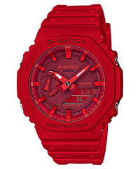 From G-SHOCK, the toughness watches that continue to evolve in search of ultimate strength, this model uses a carbon core guard structure. The case is made of fine resin containing carbon fiber that, although lightweight, exceeds the rigidity of normal resin. Prevents damage and deformation from impacts to protect the internal module. Additionally, the two-layer structure of the back cover also guards against impacts to the back of the watch. The shock-proof button structure also allows the exterior to be designed without a button guard. The design features a three-dimensional dial and a bold arrangement of large front buttons. Finished with a tough design that creates a powerful look. A model that combines the shock-proof G-SHOCK structure with an urban outdoor style.