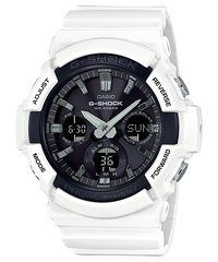 From G-SHOCK, the watch brand that is constantly setting new standards for timekeeping toughness, come new basic color models using on big case, Tough Solar GAS-100 as the base.A large, rugged case combines with an aluminum bezel and basic coloring. The GAS-100B-7ADR combines white basic coloring with a black aluminum bezel for a cool monotone design.• Tough Solar• Hand shift feature• Double LED Light (Super Illuminator with Full Auto Light)