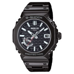 The first watch in the popular 2100 line to be included in the flagship Casio G-SHOCK MR-G family, the titanium MRG-B2100B-1A watch takes inspiration from kigumi—the ancient Japanese art of interconnected wooden construction without the use of nails—by utilizing this design inspiration for more than just style. True to the ancient art, form meets function: Casio designed this titanium watch with 27 separate components in the bezel alone, inserting buffering materials between the components as part of the tough Multi-Guard Structure. The hour indices are formed by two watch face components, adding further sophistication to honor the ancient Japanese art.Precision excellence in design, beauty, and materials, the G-SHOCK MRG-B2100B-1A titanium watch is a study in watch making. Elegance and sophistication are the hallmarks of the mirror-finish black sheen and the kigumi-inspired latticework design of the face and construction of the bezel and indices. That elegance and sophistication are complemented by legendary G-SHOCK toughness with the boost of titanium metals, including the titanium alloy Ti64, an alloy used in the aerospace industry and for biomedical applications.Precision, toughness, and beauty are the guiding design factors for the G-SHOCK MR-G family of flagship watches, and the attention to detail behind the design and construction of the MRG-B2100B-1A titanium watch ups the ante for the MR-G line. The top of the bezel is made of Cobarion®, a titanium alloy four times harder than pure titanium that also offers a white gleam like that of platinum. The watch band is fashioned from DAT55G, a super-hard titanium alloy that offers excellent processability, ensuring a comfortable fit.Scratch resistance is a core component of Casio’s titanium watches. Diamond-like carbon coating enshrouds the titanium, and the sapphire crystal glass ensures the MRG-B2100B-1A titanium watch is scratch resistant to the highest levels of modern technology and design. The coatings are hand finished by master artisans, giving an artful and precise completion to a titanium watch inspired by an ancient Japanese art of craftsmanship and beauty.The design and style may be influenced by an ancient artform, but the technology is wholly modern. The G-SHOCK MRG-B2100B-1A titanium watch is calibrated daily by a radio signal or through Bluetooth® connectivity, ensuring accurate timekeeping. Add in Tough Solar power charging and both magnetic resistance and 200m water resistance (wr 20 bar), and this titanium G-SHOCK watch is as reliable as a sunrise. Returns will only be accepted if product is in original packaging and protectant film is in place